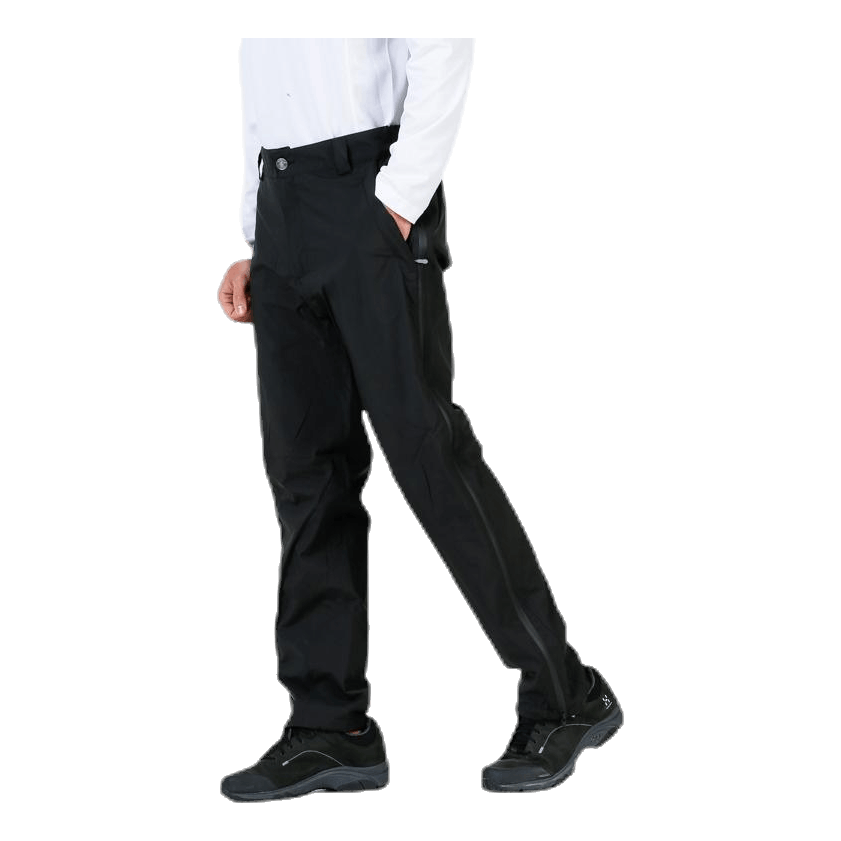 Sadehousut 4-suuntaisella joustolla. Teipatut saumat. Pitkät vedenpitävät vetoketjut sivuilla tekevät housujen pukemisesta ja riisumisesta helppoa. Elastinen nauha lahkeensuussa, jolla voi säätää leveyttä. Keveys ja kätevyys tekevät niistä yksinkertaiset mukaan otettaviksi selkäreppuun vaellukselle tai golfbagiin. Sopivat myös erinomaisesti työmatkahousuiksi. 8000 mm vesipilari ja 5000 g/m2/24h. 100% Polyesteri