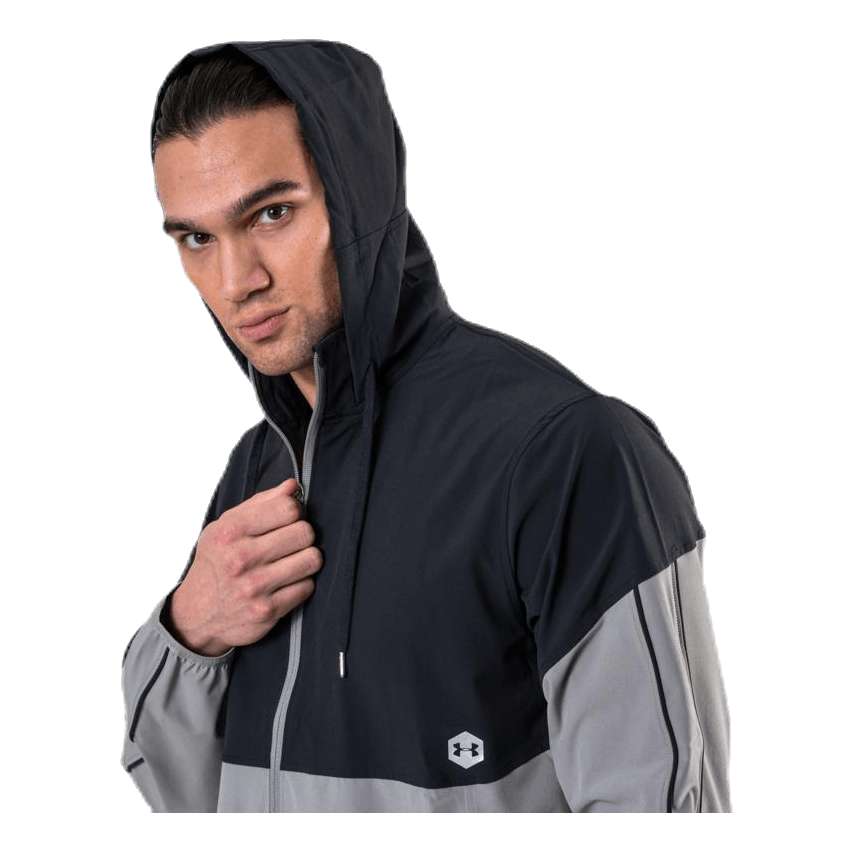 Kankaan infrapunakuvio palauttaa energiaa vartaloon, parantaa verenkiertoa ja hapen määrää, jotta lihakset palautuvat nopeammin. UA Storm-tekniikka on vettähylkivä ja hyvin hengittävä. Kevyt ja joustava kangas on vahva mutta ilmava. Neljän suunnan rakenne tarjoaa hyvän liikkuvuuden joka suunnassa. Materiaali poistaa hikeä ja on nopeasti kuivuva. Säädettävä huppu ja pystykaulus tarjoavat hyvän peittävyyden. Avoimet käsitaskut. Joustavat resorit hihoissa ja helmassa.
